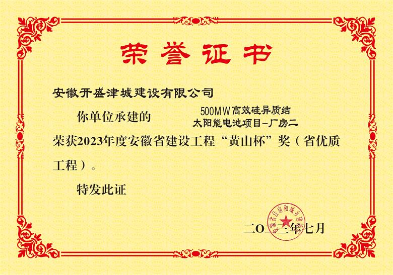 • 黃山杯--“500MW高效硅異質結太陽能電池項目-廠房二”